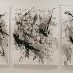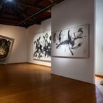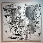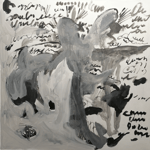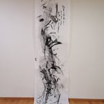 The second central thematic axis of the exhibition is the element of writing. In a series of impressive large-scale works, thoughts attempt to be captured in written word, without ever managing to take on a clear form. Thoughts seem to overshadow the writing and are depicted artistically as mist. Ultimately, language is covered by what surpasses it and is disconnected from its meaning. Along the axis of writing, there is also the video installation accompanying the exhibition, while in smaller-scale works, the artist's influence from Japan becomes apparent.